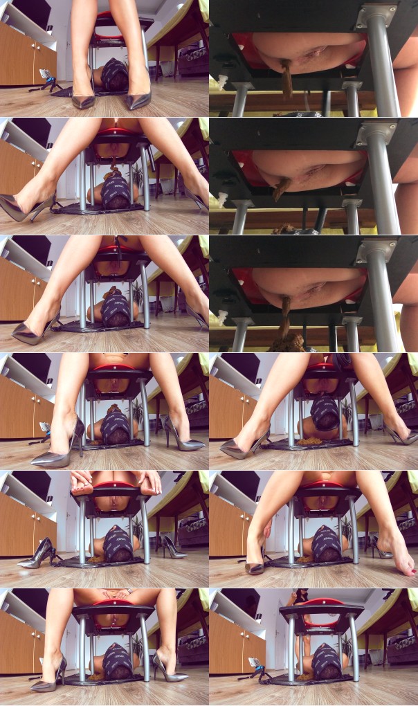 A beautiful sexy scat mistress and her human tolet slave